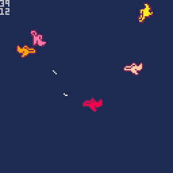if(a*a+b*b<1and j<1)j=2m="game over"k=120del(p,r)t=2for i=1,50do add(w,{x=r.x,y=r.y,z=rnd(),v=rnd(2)+2,l=24})end?"\as8i6f"