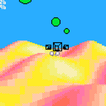 Shooter with a voxel landscape background. Destroy the enemies. Dodge the red balls enemies shoot at your ship.