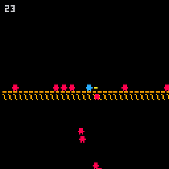 This game was made for #TweetTweetJam and contains only 552 characters of code, including art. The source code is below: